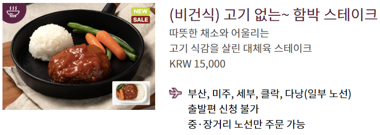 승무원 기내식이라고 표기되어 있고 가격표가 있으나 주문이 가능할 것 같지는 않은데요. 부가서비스를 활용해 기내식 신청 시 메뉴에 있는지 확인해 보면 명확해 질 듯합니다. 고객센터(1600-6200)를 통해 자세한 내용을 문의하시기 바랍니다.