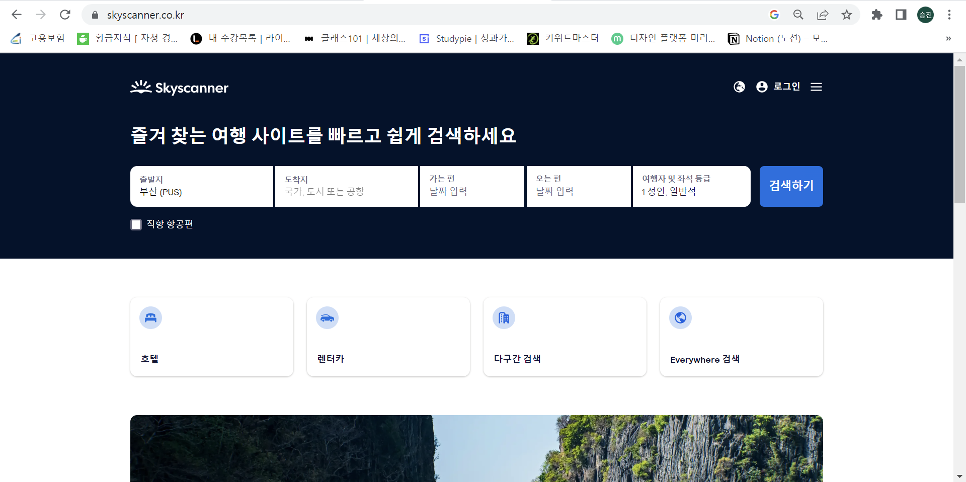항공권은 왕복, 편도, 다구간 등으로 나누어 조회할 수 있으며, 국내를 포함한 해외 여행지 모든 검색이 스카이스캐너에서 가능합니다.