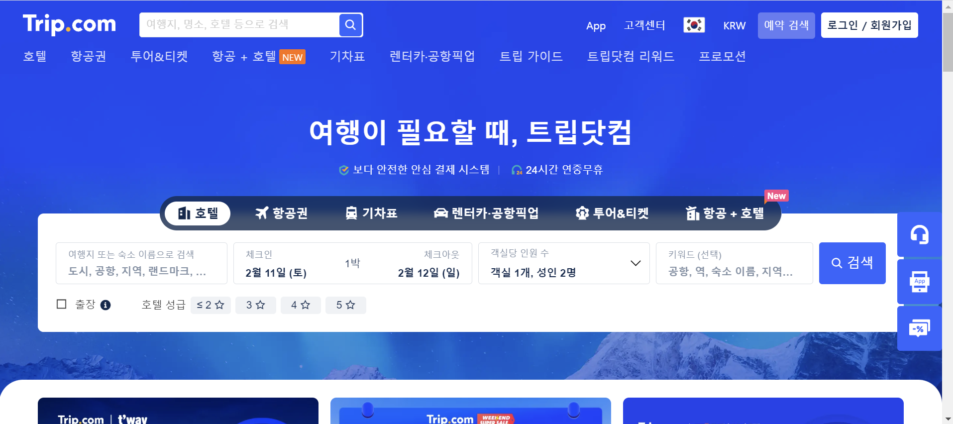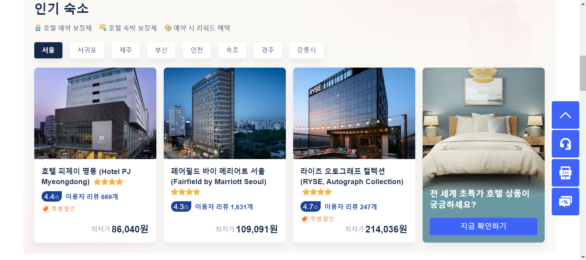 이 플랫폼으로 검색하시면 항공권, 호텔 예약, 각 관광지별 할인 티켓 구매(국,내외 모두 포함), 패키지 상품권 구매, 각종 이벤트 등 다양한 정보를 얻을 수 있습니다.