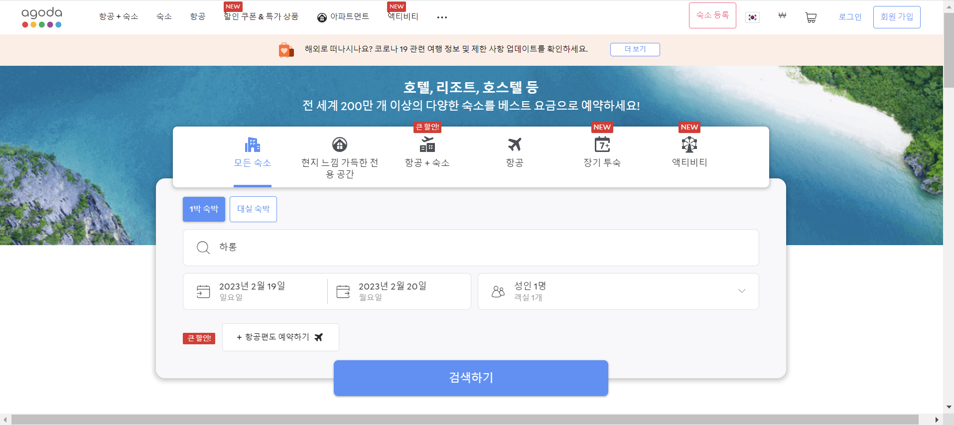 이제부터는 주로 아고다 등과 같이 PC 버전과 모바일 앱 버전을 병행하고 있는 여행상품 사이트들을 소개하도록 하겠습니다.