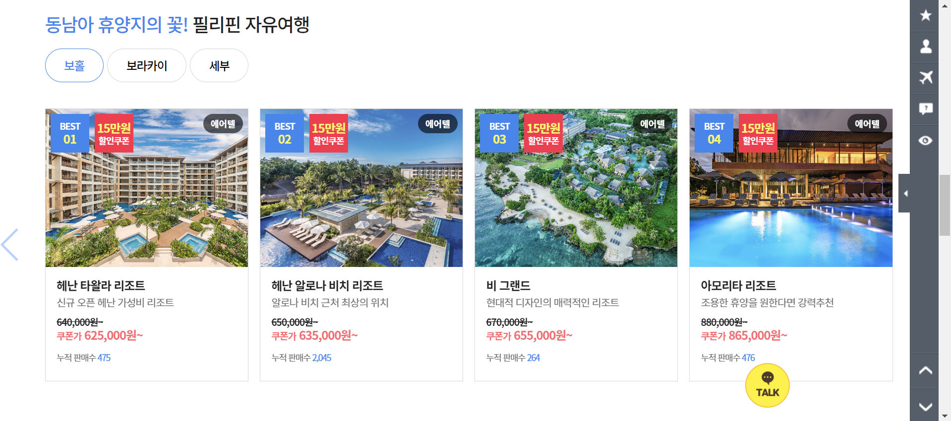 다음은 인터넷으로만 소개되는 여행상품입니다.