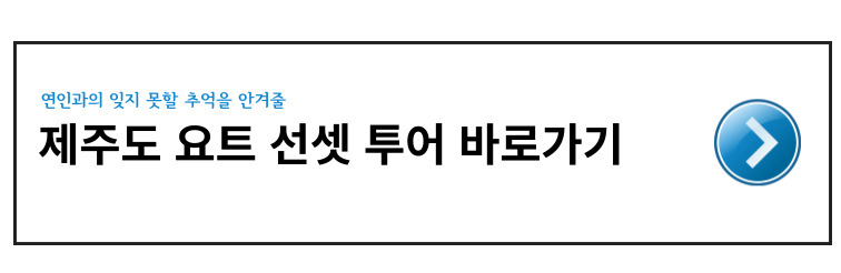 요트 선셋 투어로는 중문의 그랑블루요트 선셋 요트 투어를 추천합니다. 해지는 로맨틱한 제주 모습을 요트 위에서 경험한다니 생각만으로 가슴 벅차지 않으신가요? 사랑하는 여인과 평생 잊지 못한 추억을 만들어 보시는 건 어떠실까요?