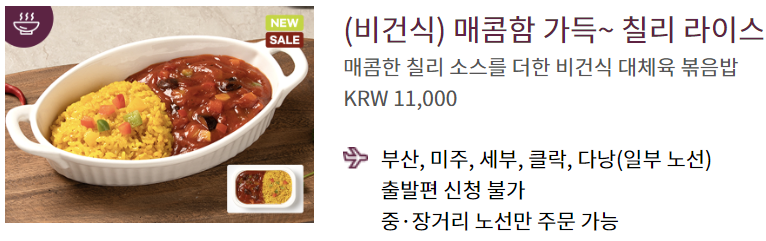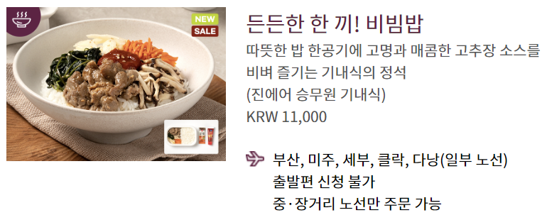 승무원 기내식이라고 표기되어 있고 가격표가 있으나 주문이 가능할 것 같지는 않은데요. 부가서비스를 활용해 기내식 신청 시 메뉴에 있는지 확인해 보면 명확해 질 듯합니다. 고객센터(1600-6200)를 통해 자세한 내용을 문의하시기 바랍니다.