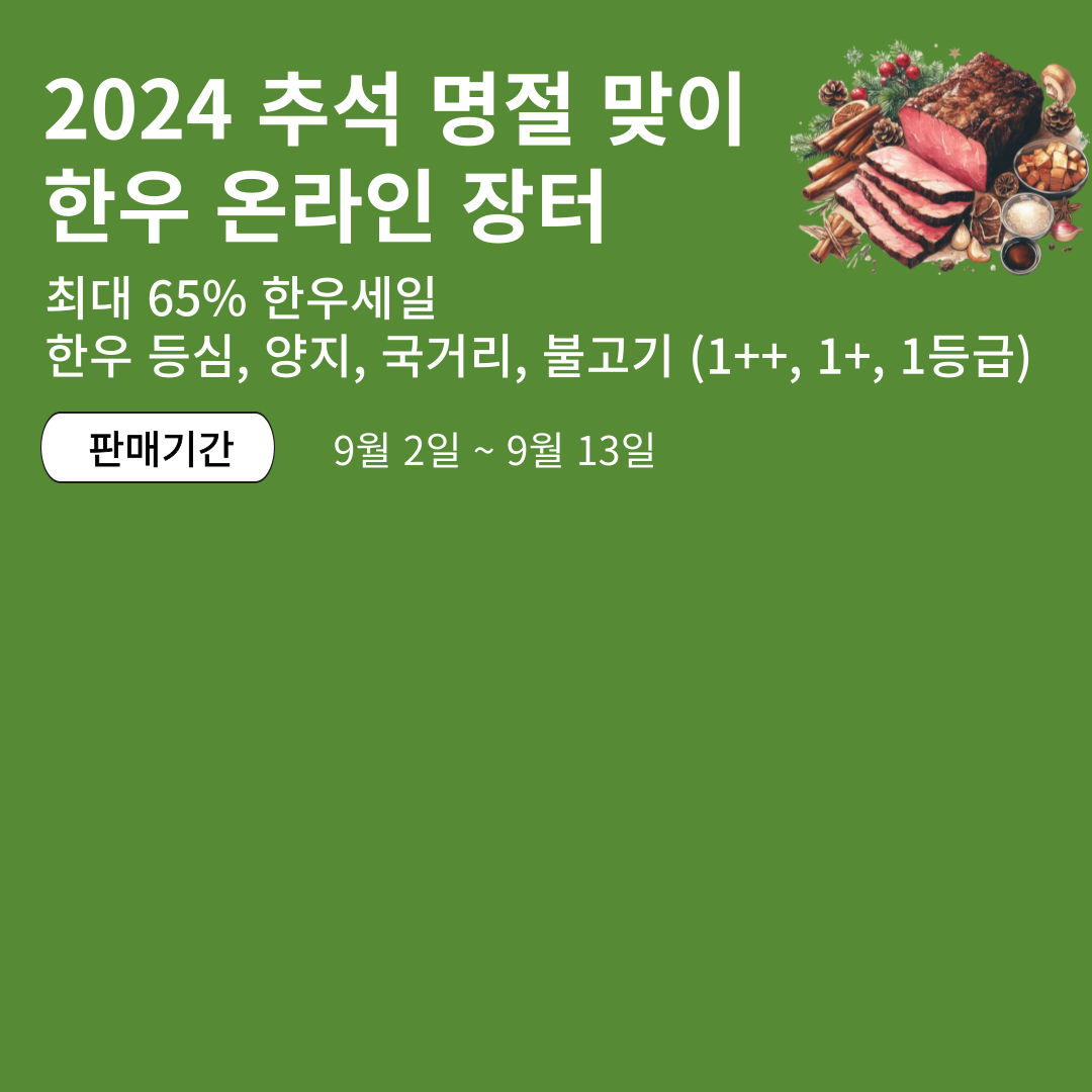 이제 최고의 한우를 저렴한 가격에 구매할 수 있는 기회가 눈앞에 있습니다. 이번 2024 추석맞이 온라인 한우장터 할인 행사를 통해 가족과 친구들에게 최고의 맛을 선물해보세요. 프리미엄 한우를 합리적인 가격에 구매할 수 있는 절호의 기회, 놓치지 마시고 지금 바로 클릭하세요!